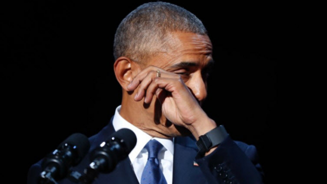 Undangongumenn hansara, Bill Clinton og George Bush, hildu báðir sína fráfaringatalu í Hvítu húsunum, men Barack Obama helt sína í stórari ráðstevnuhøll í Chicago, har pláss er fyri 20.000 áhoyrarum.