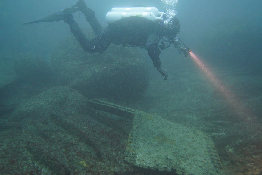 Kavingin var partur av eini rannsóknarferð, sum Tórshavnar Froskmannafelag gjørdi í Sandoy um vikuskiftið.