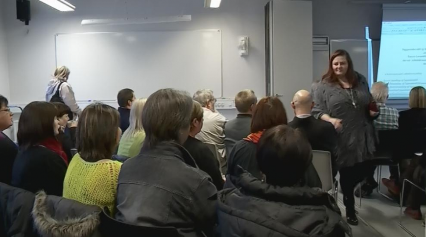 vita av brævinum, tí teirra arbeiði var liðugt.</div></div><div><br></div><div><b>Meiri verður at frætta í útvarpstíðindunum og Degi og Viku í kvøld.</b></div><div><br></div><div><i>Mynd: Selma Ellingsgaard, forkvinna í Starvsmannafelagnum, kunnaði fyrrrapartin síni álitisfólk um semingsroyndina.</i></div>