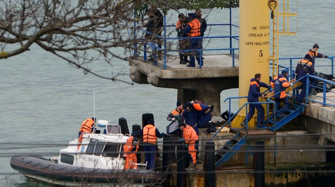 Øll 92 fólkini, sum vóru við einum Tupolev TU 154-flogfari í Russlandi jóladag, lótu lív. Bjargingarfólk bera eitt deytt fólk í land í Sochi í útsynningspartinum í Russlandi