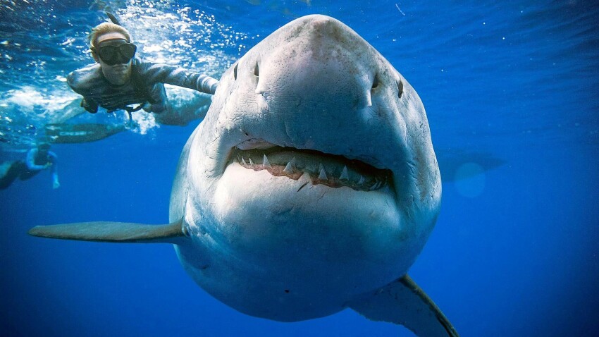Kavarar hava svomið við einum hvítum hávi, sum verður hildin at vera størsti hávur í heiminum
