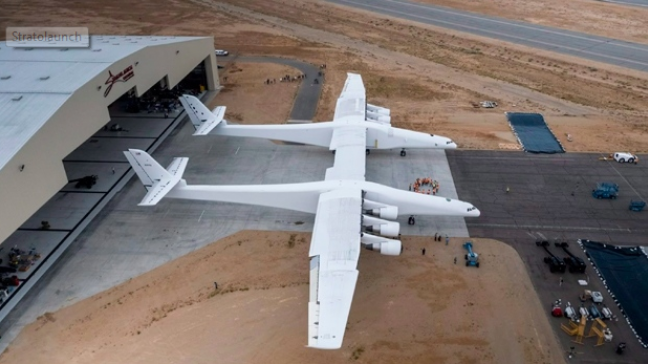 Heimsins størsta flogfar hevði fyrstu royndarflúgving sína í apríl og tað var yvir Mojave-oyðimørkini í Kalifornia. Veingjabreiðið á flogfarinum er longri enn ein fótbóltsvøllur, - og 50 prosent størri enn á Airbus 380, sigur norska tv2.