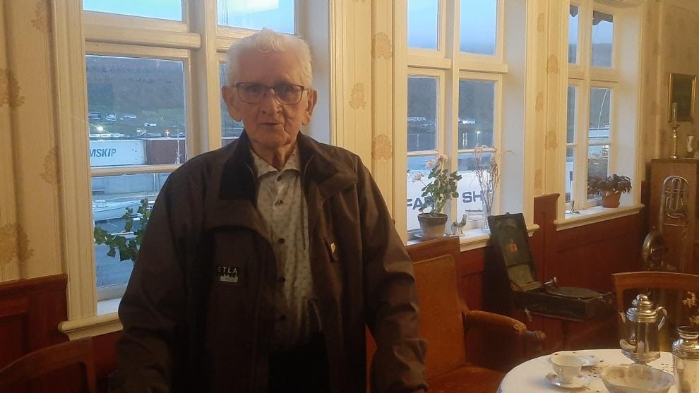 The clip consists of a short conversation between trade minister Helgi Abrahamsen and Herálvur Joensen, the permanent secretary of the Ministry of Trade.