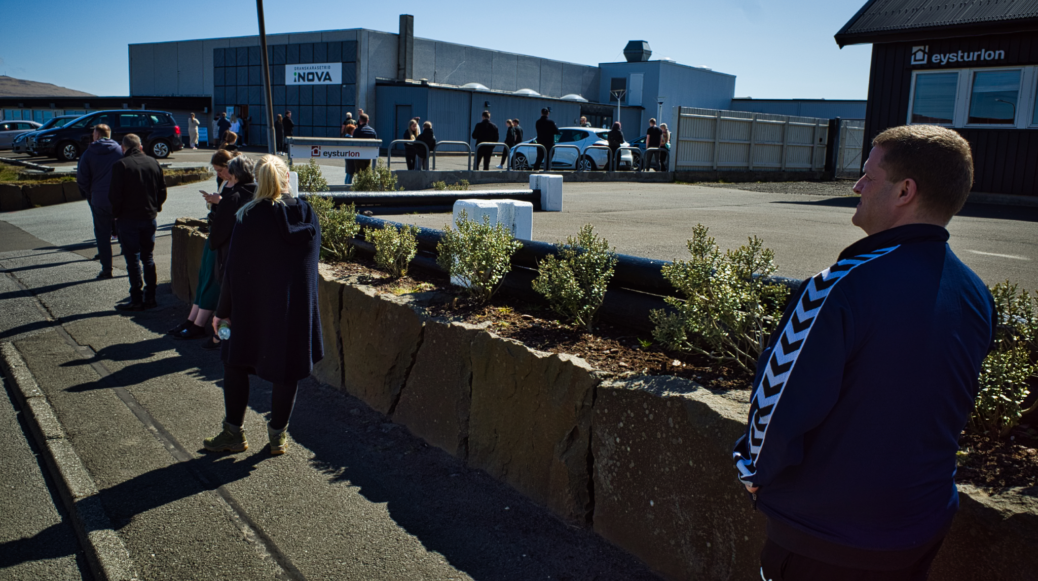 Nógvu smttutilburðir seinastu dagarnar hava havt við sær, at nógv fólk eru farin at kanna seg fyri koronu. Henda myndin varð tikin uttan fyri kanningarstovuna hjá Thetis í Havn í gjár. (Mynd: Bjarni Árting Rubeksen)