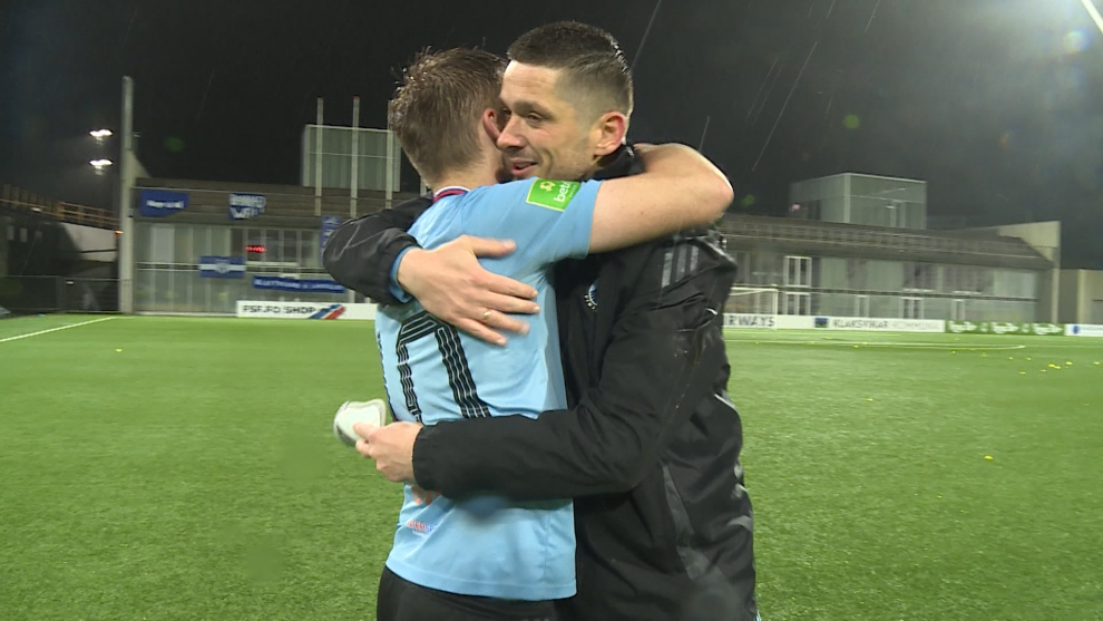 Stórur spenningur er um, hvør flytur upp í best mansdeildina í fótbólti saman við Skála.