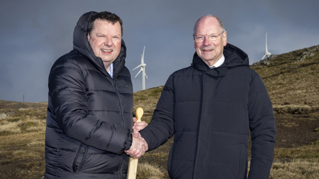 Heðin Mortensen, borgastjóri, loysti fyrsta flagið til vindmyllulundina í Flatnahaga. (Mynd: Ólavur Frederiksen, Tórshavnar kommuna)