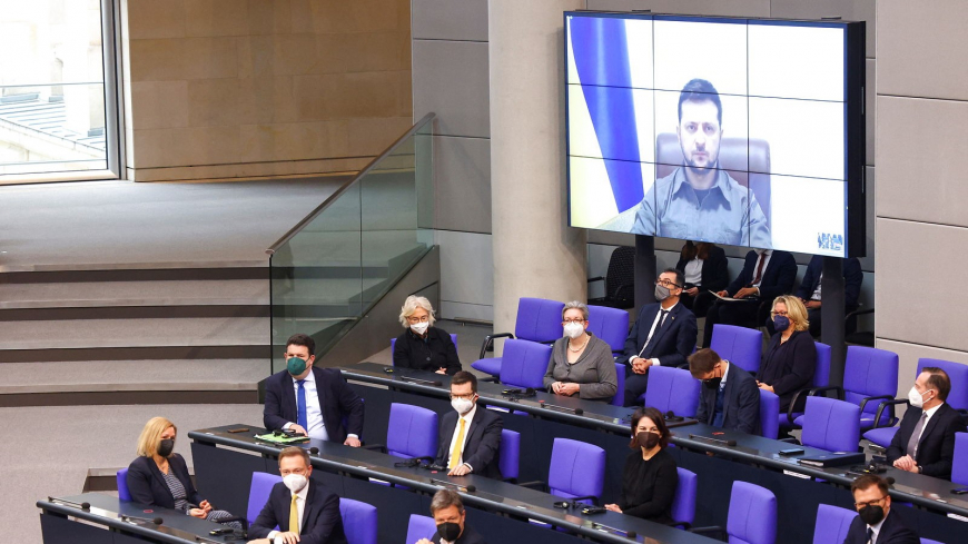 Rungandi lógvabrestir vóru í týska samveldistinginum fyri ukrainska forsetanum, Volodymyr Zelenskyj, í dag, tá hann helt røðu á netinum, men Zelenskyj nýtti høvið at harta týskarar.