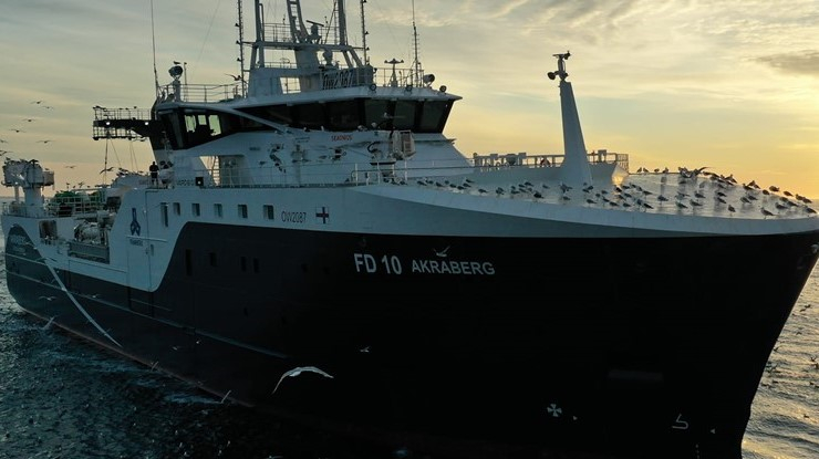 Akraberg fór beinleiðis av skipasmiðjuni á fiskileið, og hevur verið ein mánað í Barentshavinum. Teir hava 860 tons í lastini.