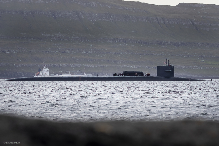 An American submarine of the Ohio class, which is the largest U.S. submarine class, today made a brief stopover outside Tórshavn for a crew change.