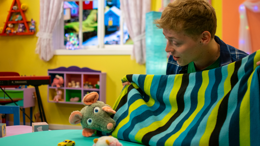 Á bókahillini sita eisini nógvar bamsur, bæði stórar og smáar, og har eru eisini nógvar stuttligar leikur at spæla við.