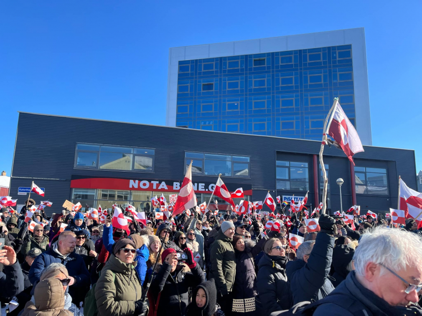 Mótmælisgongan er eitt svar uppá útsagnirnar hjá amerikanska forsetanum, Donald Trump, um at vilja yvirtaka Grønland.