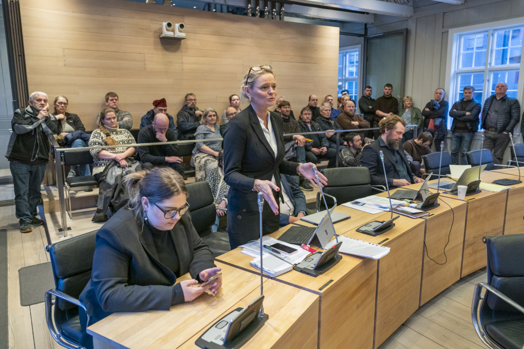 Beinir Johannesen, formaður í Fólkaflokkinum, á fundi í Tinganesi um tjóðarsemju.
