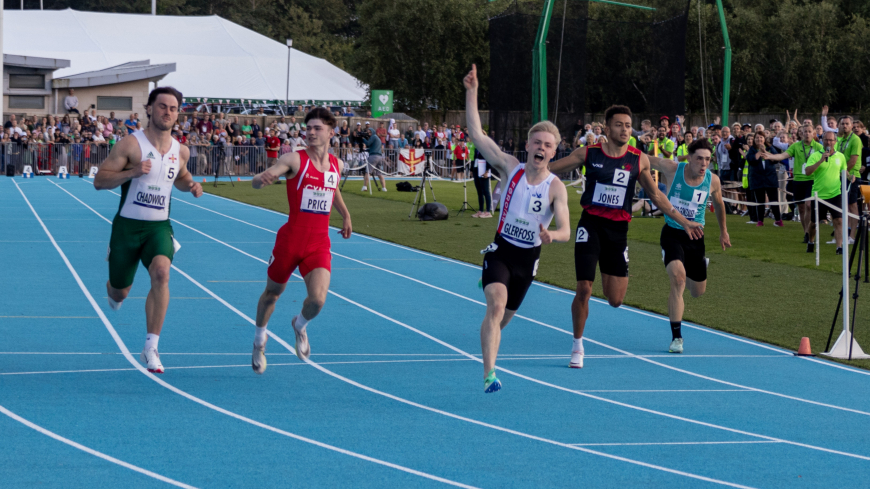 Eiri Jógvansson Glerfoss streyk undan mótstøðumonnunum og vann 100 metur renningina í Guernsey. Ein føroyingur var skjótasti maður á oyggjaleikum. Harafturat fór hann avstað við fyrsta plássinum í longdarlopi.