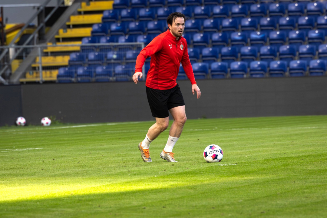 Viljormur Davidsen til venjing á vøllinum hjá Brøndby. (Mynd: HB á Facebook)