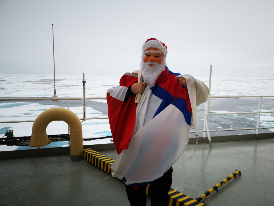 (Og sum myndin vísir, so býr jólamadurin á Norðpólinum, og hann vitjaði umborð á Oden og letur heilsa øllum børnum heima í Føroyum, sigur Lukas Sólheim @Lukas Sólheim)