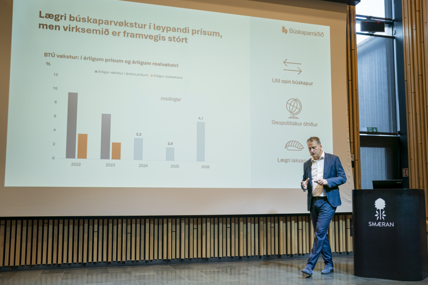 Fíggjarpolitikkurin eigur í staðin at ganga ímóti konjukturinum, tað vil siga, at hann skal tálma í góðum tíðum, sigur Búskaparráðið.