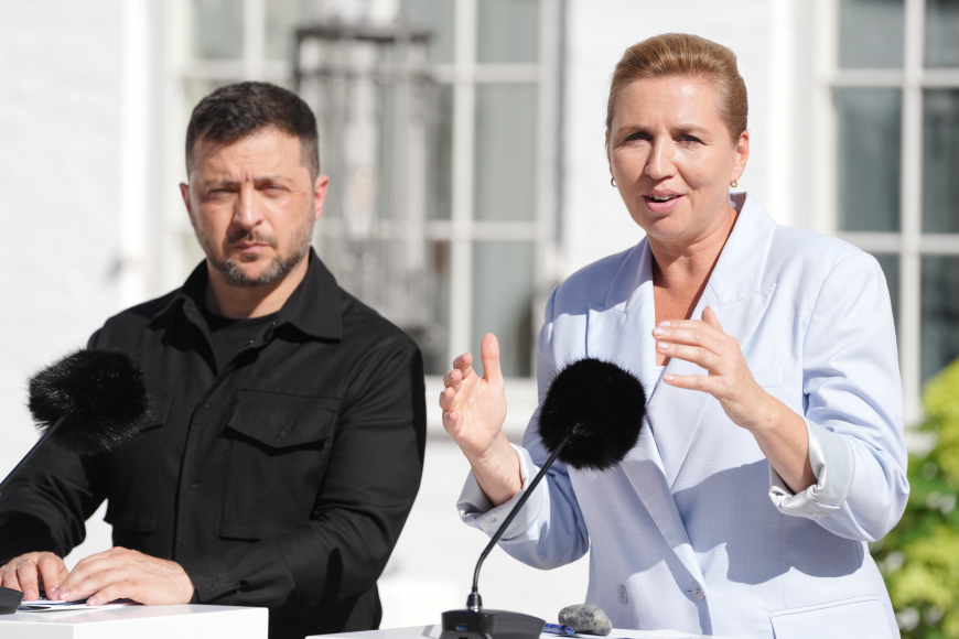 Um tvey-tíðina hildu danski forsætisráðharrin, Mette Frederiksen, og ukrainski forsetin, Volodomyr Zelenskyj, tíðindafund á Marienborg.