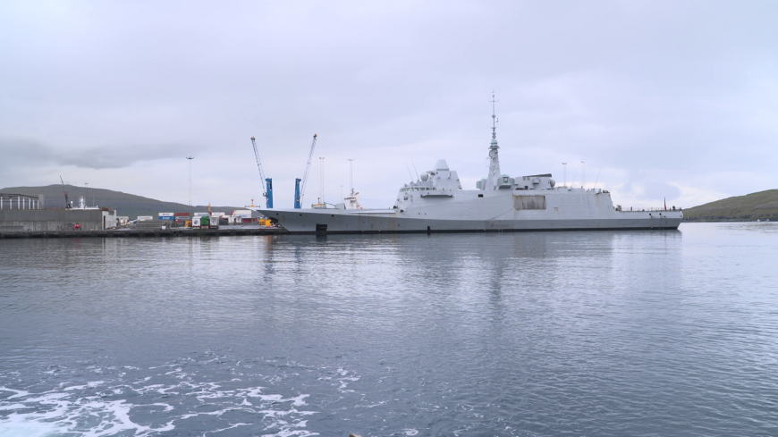 Drona fleyg yvir fronskum herskipi í Havn