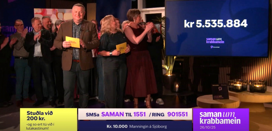 Innsavningin til frama fyri Krabbameinsfelagið í gjárkvøldið gav meira enn fimm milliónir kr.