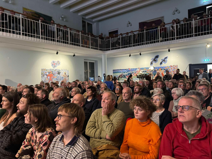 Nógv fólk vóru komin saman í Finsen og um 1.400 fólk fylgdu við á netinum, tá náttúrufelagsskapir í gjárkvøldið settu náttúruna ovast á breddan í málinum um Suðuroyartunnilin.