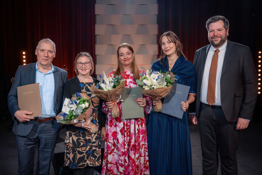 Lea Kampmann, Kinna Poulsen, og foreldrini hjá Bárði Oskarsson nýtti høvið, tá tey fingu mentanarvirðislønir landsins 2025, at takk fyri.