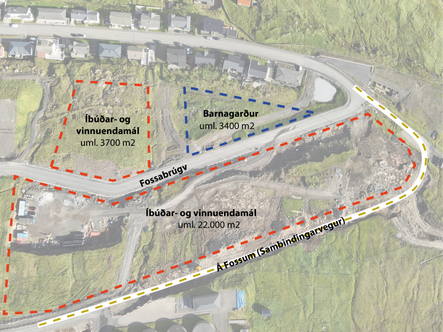 Byggilendið á Fossum, sum verður boðið út, er tilsamans umleið 30.000 fermetrar.