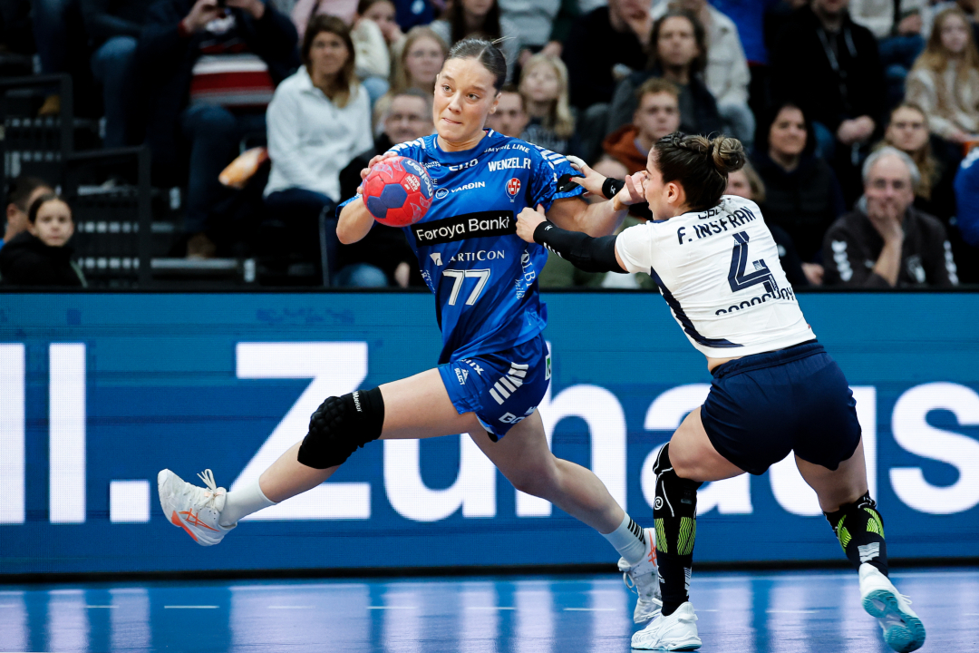 Jana Mittún fekk hvílt seg eitt sindur í trygga sigrinum á Paraguai sunnudagin, men hon verður ivaleyst inni frá byrjan í bakketuni saman við Súnu Krossteig Hansen og Mariu P. Nólsoy. (Mynd: Jule Erzen)
