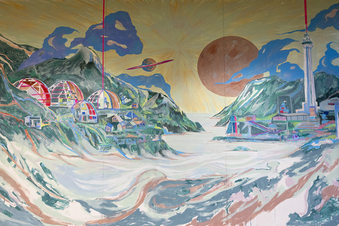 Fjaldir neonlitir í málningunum hjá Bárði koma fram í myrkri