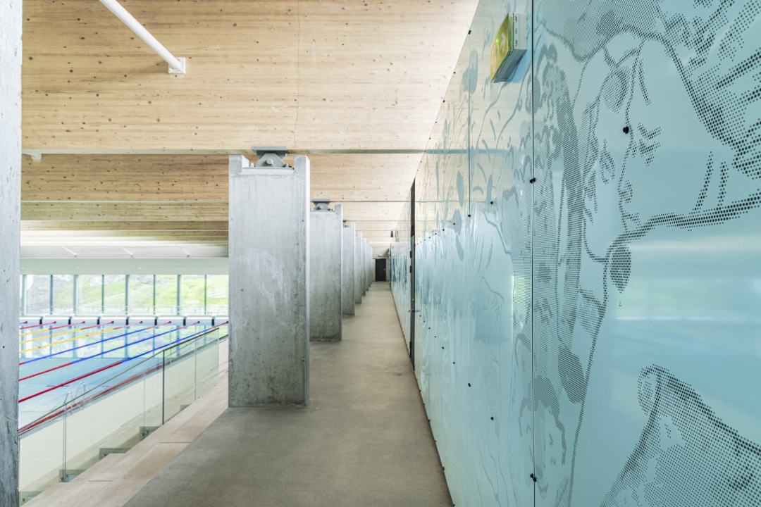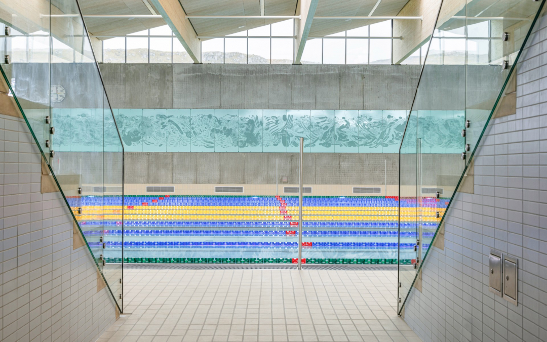 Listaverkið hjá Silju Strøm eitur “Vit liva í hvørjum øðrum”, og stóra listaverkið er báðumegin tann 50 metrar langa hylin. Talan var um eina krevjandi og øðrvísi uppgávu fyri Silju, tí heilt serstøk krøv vóru sett til tilfarið í listprýðingini, sum mátti tola luftina í eini svimjihøll, og ikki broyta ljóðupplivingina í svimjihøllini. Tí er verkið gjørt úr stórum aluminiumsplátum, og motivini eru smá hol í plátuni: