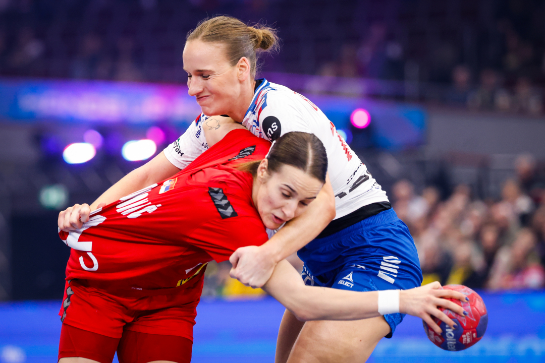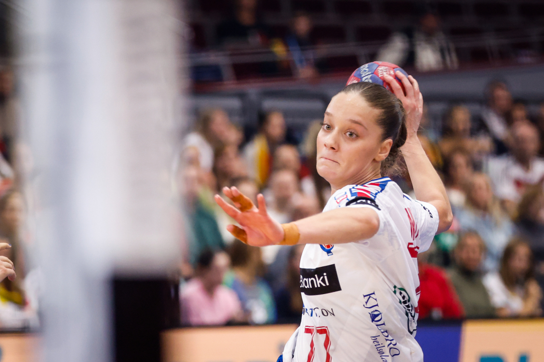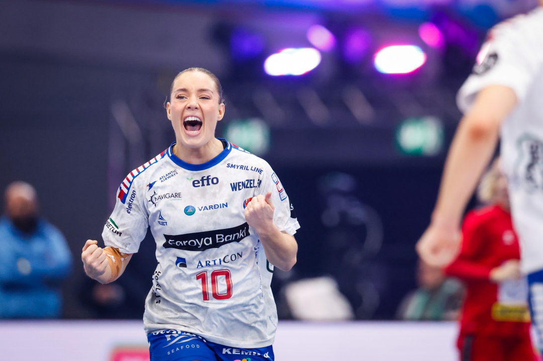 Ísakøld: Jana Mittún skeyt sítt fyrsta brotskast undir HM-endaspælinum, og hon sveik ikki og gav Føroyum flottan javnleik ímóti Serbia: (Mynd: Anze Malovrh / kolektiff)