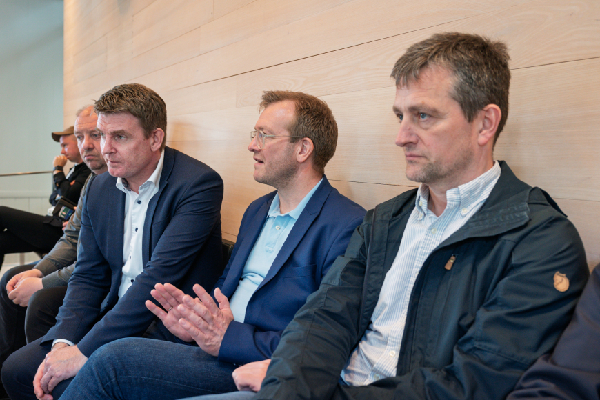 Savnsmynd: Aksel V. Johannesen, løgmaður og Teitur Samuelsen, stjóri í stjóri í P/F Suðuroyartunlinum.
