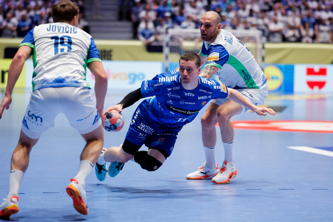 Av høgra veingi var effektiviteturin heldur ikki í topp ímóti Slovenia. Hákun West av Teigum kennir seg kanska noyddan at fara eftir málinum viðhvørt, hóast vinkulin er ímóti honum. (Mynd: kolektiff)