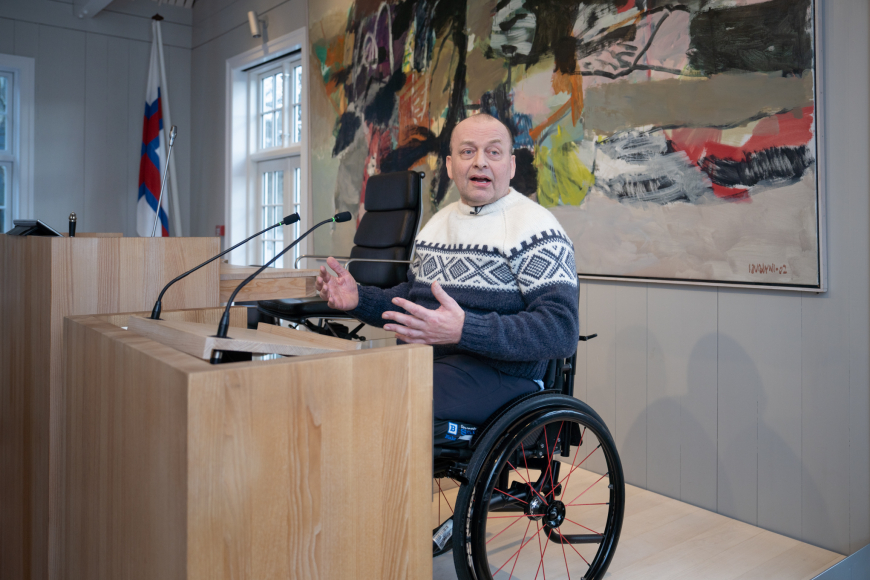Sjálvt um tú ert rørslutarnaður, ber nú væl til at halda røðu á tingsins røðarpalli. (Mynd: Bjarni Árting Rubeksen)