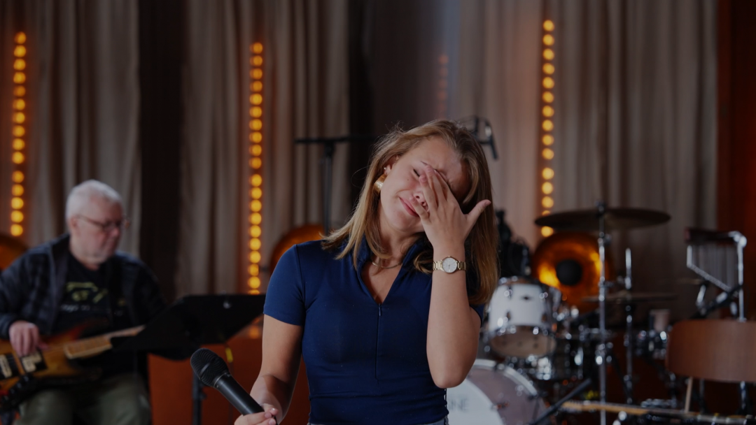 "Eg eri so bangin fyri at oyðileggja sangin," sigur ein kensluborin Emma undir einari av mongu venjingunum undan framførsluni fyri Martini Joensen.