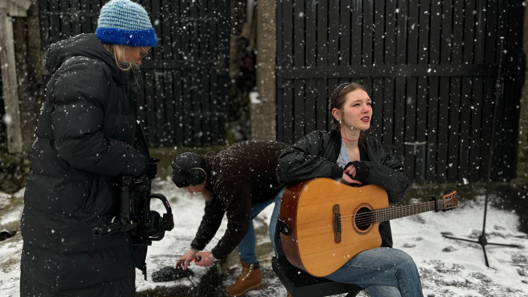 (Mynd: Kristina Sundstein Borgarlíð) Februarkuldin merktist í Kaldbak, og tað var fjálgað um Ronju millum upptøkurnar.