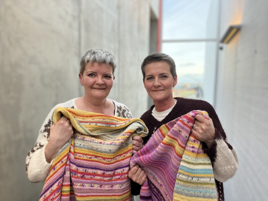 Hóast hugurin ikki hevur verið líka stórur hvønn dag í árinum at hekkla, so eru systrarnar báðar sera fegnar um teppini, sum tær standa við í dag.