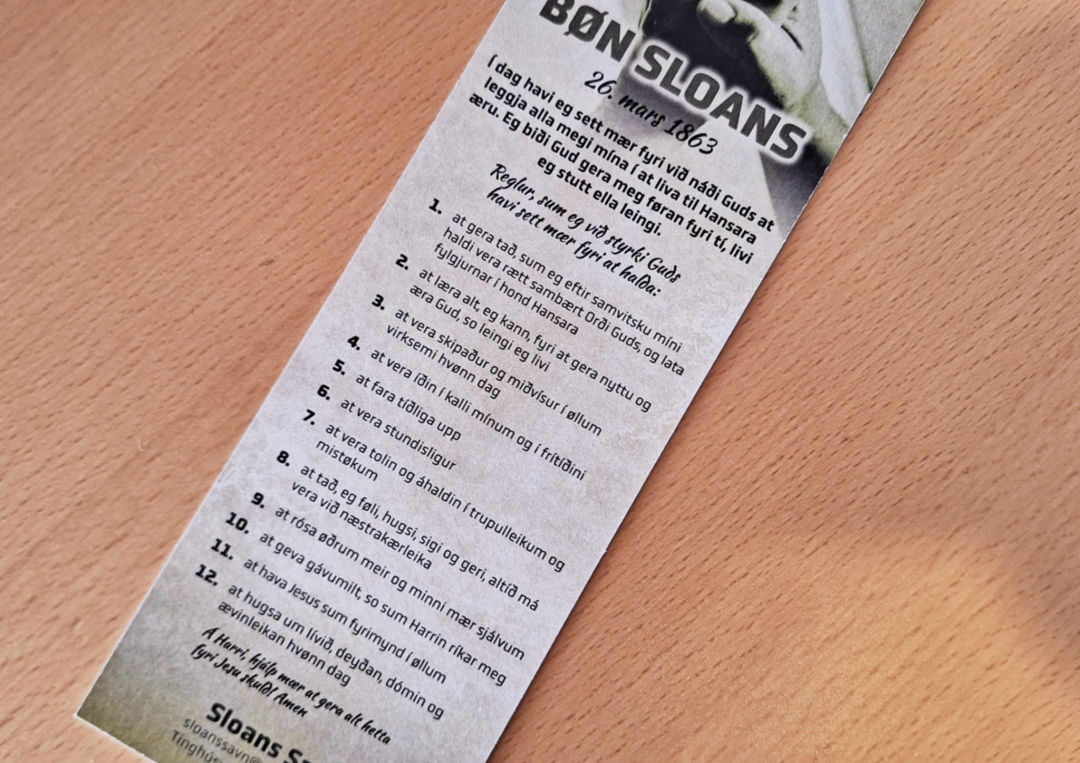 Sum heilt ungur, 26. mars í 1863, skrivaði William Sloan eina bøn við 12 lívsregglum, sum hann livdi eftir. Í teimum liggja lívsfilosofiskir tankar, sum eru áhugaverdir og eisini relevantir í dag, heldur Róland í Skorini: