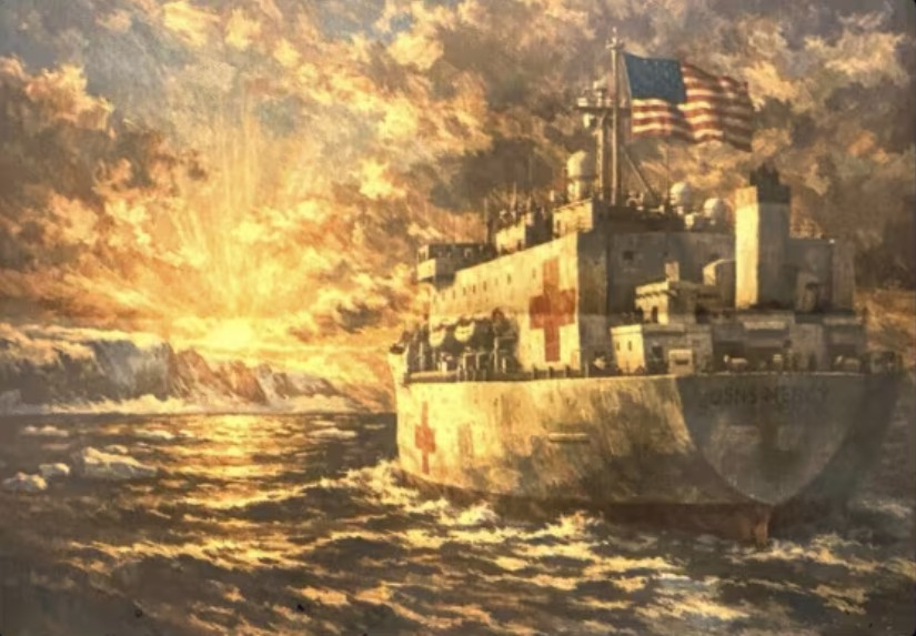 USA hevur tvey slík skip - USNS Mercy og USNS Comfort - men bæði liggja í løtuni á skipasmiðju í Alabama.