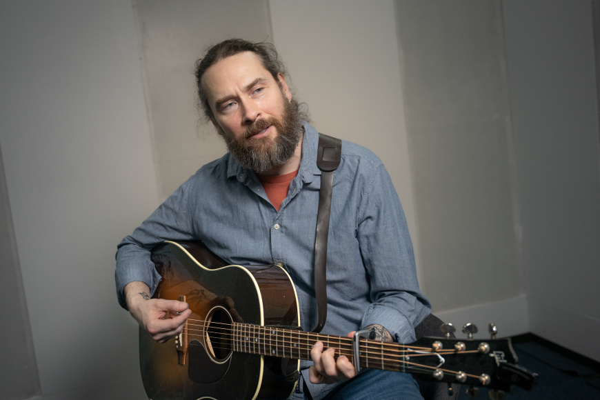 Vanliga setir hann seg við gittaranum og tekur eina akkord. Ofta er tað C ella G, og síðani murrar hann eitt lag.