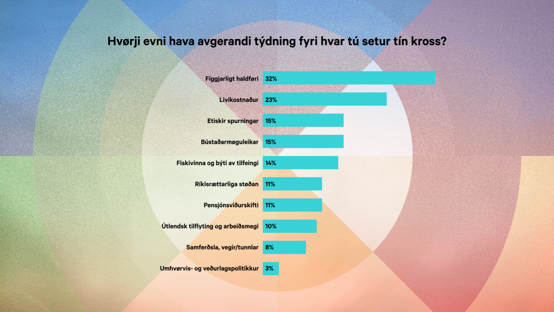 Hetta eru evnini, sum veljarin sigur vera avgerandi fyri, hvar krossurin verður settur á løgtingsvalinum, sambært veljarakanningini hjá Kringvarpinum.