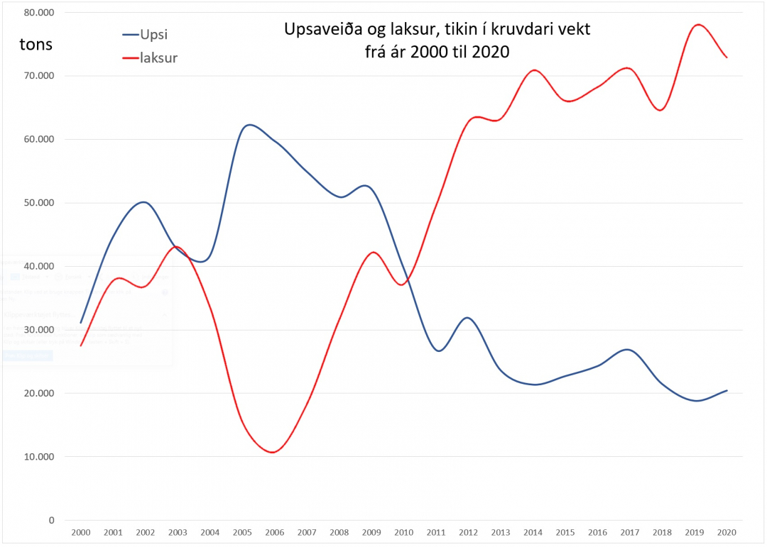 Vert er at viðmerkja, at seinastu tvey árini hevur eisini upsafiskiskapurin ment seg aftur, uttan at alivinnan hevur sett ferðina niður.