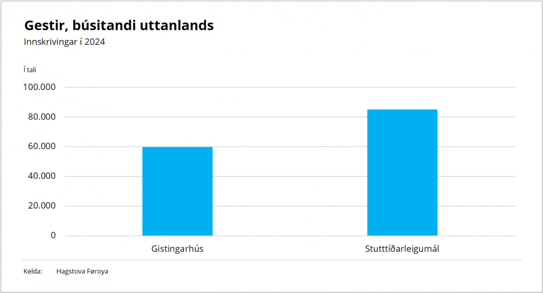 Nógv fleiri útlendingar, sum koma til Føroya, gista í stutttíðarleigumálunum, til dømis AirBnb, enn í gistingarhúsunum.
