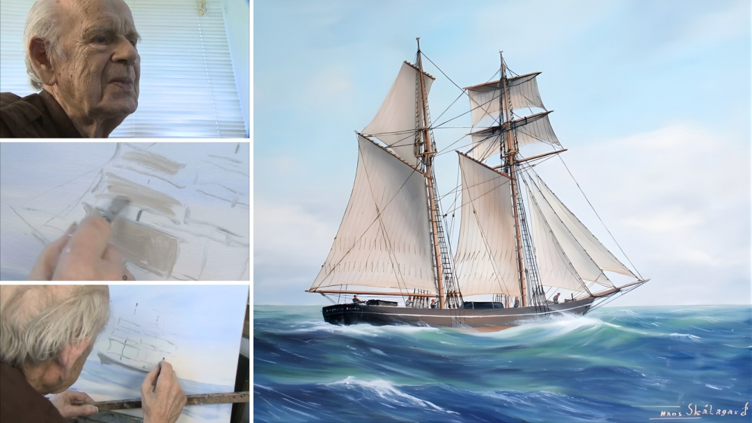 »Onkur brot úr lívssøguni hava verið frammi um krígssiglingina, grannalagið við heimskenda filmsstjørnuna og leikstjóran Clint Eastwood, og avrik hansara sum marinumálari. Men 2. páskadag fara vit afturum hesar søgurnar og fáa innlit í barna- og ungdómsár Hanus Skálagarð, og leggja síðani dent á at siga frá hansara virkna lív sum listamálari. Hanus var elsti sonur bóndan á Skálagarði í Skúvoy, men tímdi ikki bóndalívið og fór tíðliga út at sigla. Hann var 18 ár, tá hann í 1942 kom yvir til USA. Giftist og búsettist í Kalifornia, men kom ikki upp á land fyrr enn í 1968. Tá fór hann at mála full time. Hann helt á at mála til hann doyði 93 ára gamal, og var tá ein legenda, ið var heiðraður við plássi í Scandinavian Hall of Fame í Kalifornia saman við øðrum selebritetum sum eitt nú Victor Borge.«
