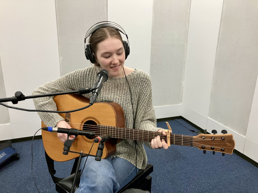 Hon byrjaði á barnaárum at spæla ukulele. Í grundini eitt gott hugskot, heldur hon, tí gittarin er so krevjandi, tá tú byrjar.