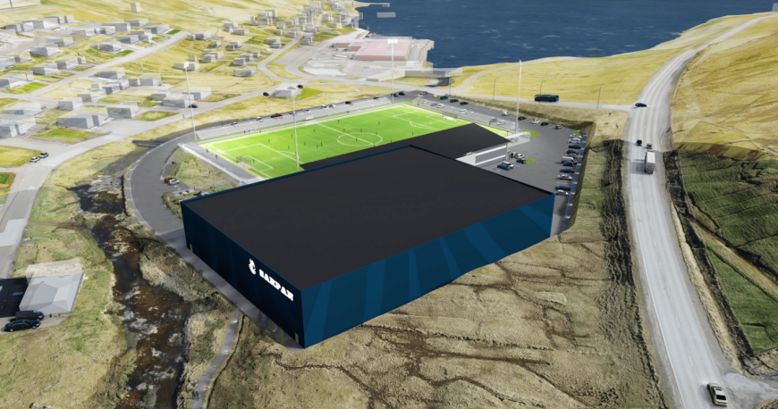 Arbeiðið upp á fótbóltshøllina í Sarpugerði byrjar næsta ár