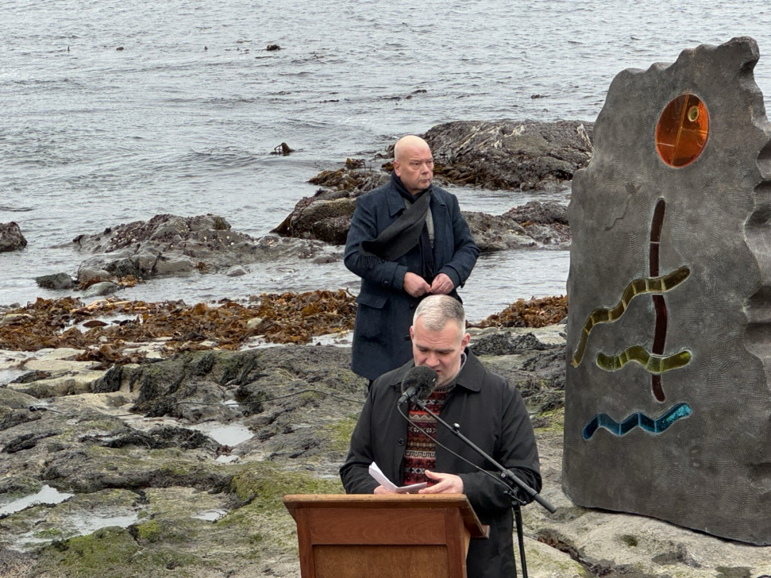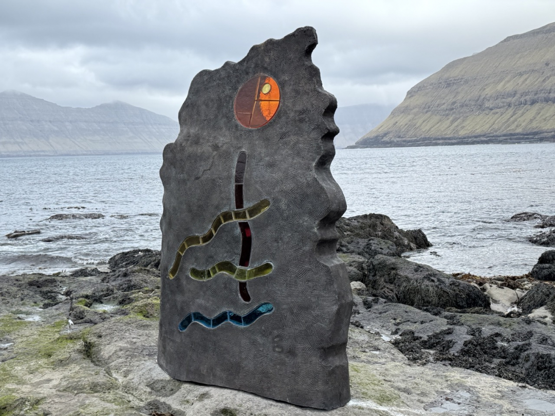 Standmyndin, sum í gjár var avdúkað í fjøruni í Oyndarfirði, er ein "klettur", stoyptur í bronsu og prýddur við glaslist, millum annað einum glugga, sum vónarinnar ljós skínur ígjøgnum, tá sólin stendur í suðri.