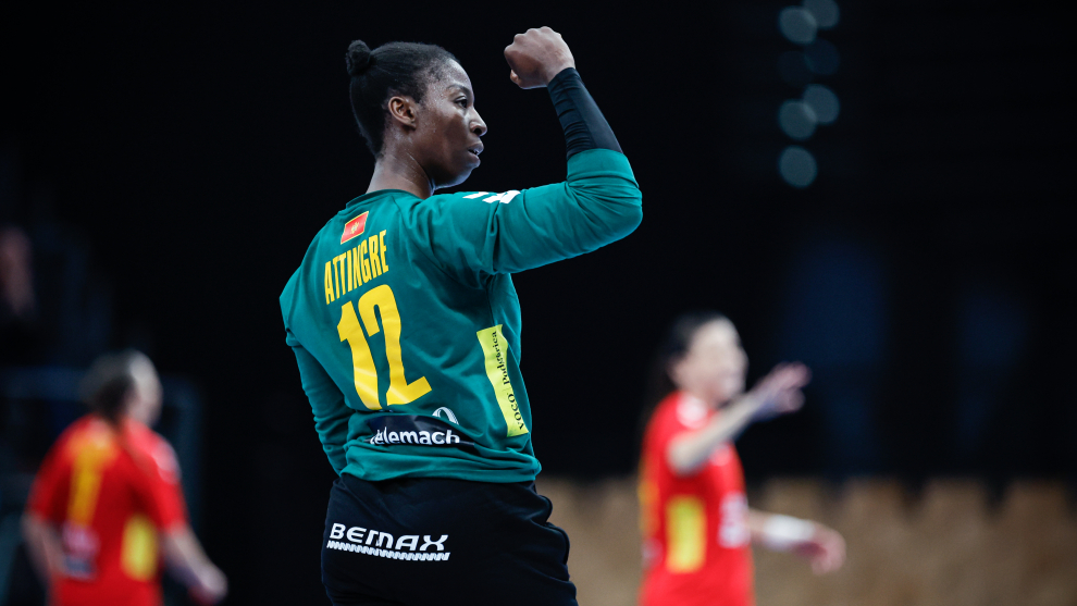 Hondbóltur Armelle Kelly Attingré í málinum hjá Montenegro bjargaði heili 17 av 38 skotroyndum, og tí komu Føroyar ongantíð ordiliga nær sterka mótstøðuliðnum í fyrsta HM-dystinum |