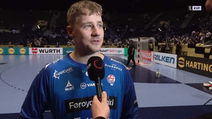 "Tað er ordiliga gott og hart ball, men tað er eisini kul at hyggja eftir hondbóltinum," sigur Jason Thomsen Stovugarð.