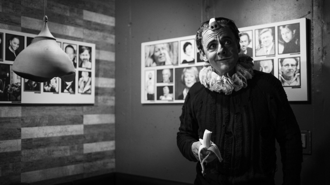 Olaf spælir tveir høvðusleiklutir, Rollan og Sjónleikarin. Rollan við nøs sum masku og Sjónleikarin við sínum bera andliti.