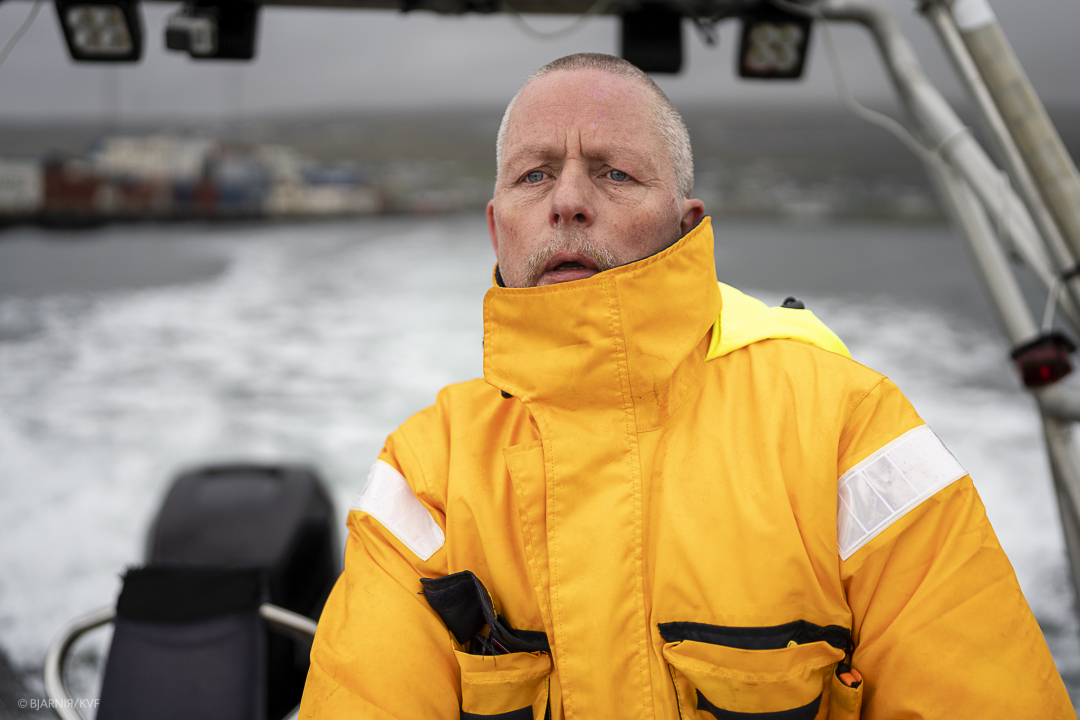 Jákup Alberg Berg og manning høvdu fingið til uppgávu at føra sjúka mannin av kavbátinum og til lands.